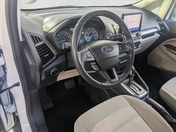 * Se Convenience Package * Sun/Moonroof * Navigation System * Keyless Start * Diamond White * Engine: 1.0L Ecoboost * Equipment Group 200A * Front License Plate Bracket * Medium Stone; Unique Cloth Heated Front Bucket Seats * Transmission: 6-Speed Automatic W/SelectshiftThis vehicle includes a Money-Back Guarantee* and passed our precise inspection process. Best of all the price you see is the price you pay. No haggling. No back and forth. No pressure. And this price is so good it is guaranteed.Roseville BMW This Ford includes: ENGINE: 1.0L ECOBOOST 3 Cylinder Engine Gasoline Fuel Turbocharged *Note - For third party subscriptions or services, please contact the dealer for more information.* This SUV is a great example of beauty and brawn with classic styling and a workhorse power plant. The Ford EcoSport SE will provide you with everything you have always wanted in a car -- Quality, Reliability, and Character. This is about the time when you're saying it is too good to be true, and let us be the one's to tell you, it is absolutely true.*Money-Back Guarantee is valid for 5 days or 250 miles, whichever comes first. Subject to certain terms and conditions. See store for details. Some restrictions apply.