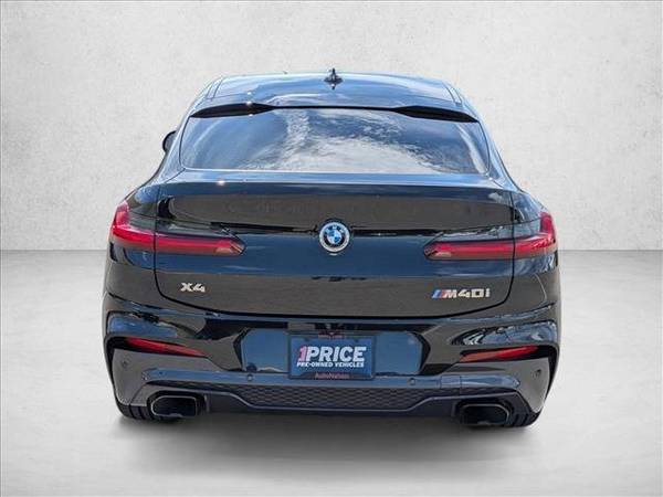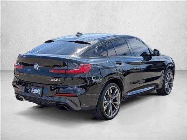 * Executive Package * Wheels: 21" X 8.5" Fr/21" X 9.5" Rr (Style 718M) * Canberra Beige/Black; Vernasca Leather Upholstery * Panoramic Roof * Black Sapphire Metallic * Heated Front Seats * Leather Seats * Navigation System * Ambient Lighting * Heated Steering Wheel * Keyless Start * Heads-Up Display2021BMWX4 This BMW includes: HEATED FRONT SEATS Heated Front Seat(s) CANBERRA BEIGE/BLACK, VERNASCA LEATHER UPHOLSTERY Vinyl Seats Cloth Seats Leather Seats Premium Synthetic Seats AMBIENT LIGHTING BLACK SAPPHIRE METALLIC EXECUTIVE PACKAGE Automatic Parking Heated Steering Wheel Back-Up Camera Heated Front Seat(s) Heads-Up Display HEATED STEERING WHEEL Heated Steering Wheel WHEELS: 21 Chrome Wheels Tires - Front Performance Aluminum Wheels Steel Wheels Tires - Rear Performance *Note - For third party subscriptions or services, please contact the dealer for more information.* Gone are the days of SUVs being the size of a tank and handling like one. This BMW X4 is a perfect example of how SUVs have evolved into vehicles that are as refined as they are rugged. Is it possible to fall in love with a vehicle? It is when your vehicle is as prestige as the BMW X4. Enjoy driving? Well now you will get more thrills behind the wheel thanks to the heightened performance of AWD. Better handling. Better traction. Better driving experience. You can tell this 2021 BMW X4 has been pampered by the fact that it has less than 32,649mi and appears with a showroom shine. Marked by excellent quality and features with unmistakable refined leather interior that added value and class to the BMW X4 M40i.