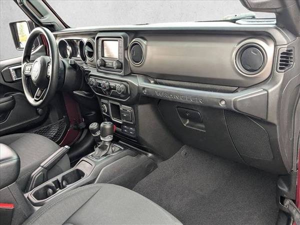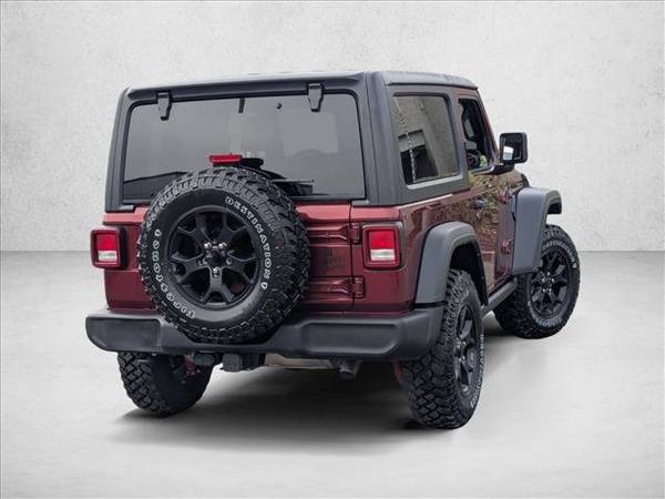 * Transmission: 8-Speed Automatic (850Re) * Black 3-Piece Hard Top * Air Conditioning * Trailer Tow & Hd Electrical Group * SiriusXM Satellite Radio * Snazzberry Pearlcoat * Keyless Start * Convertible Hardtop * Black; Cloth Low-Back Bucket Seats * Tires: Lt255/75R17C * Engine: 2.0L I4 Dohc Di Turbo W/EssThis vehicle includes a Money-Back Guarantee* and passed our precise inspection process. Best of all the price you see is the price you pay. No haggling. No back and forth. No pressure. And this price is so good it is guaranteed. *Money-Back Guarantee is valid for 5 days or 250 miles, whichever comes first. Subject to certain terms and conditions. See store for details. Some restrictions apply.This outstanding example of a 2021 Jeep Wrangler Willys Sport is offered by AutoNation Chrysler Dodge Jeep Ram Roseville. This Jeep includes: ENGINE: 2.0L I4 DOHC DI TURBO W/ESS *CREDIT* 4 Cylinder Engine Gasoline Fuel Turbocharged *Note - For third party subscriptions or services, please contact the dealer for more information.* Do so much more with one vehicle. This Jeep Wrangler gives you everything you need an automobile to be. Handle any terrain with ease thanks to this grippy 4WD. Whether you're on a slick pavement or exploring the back country, you'll be able to do it with confidence. This is about the time when you're saying it is too good to be true, and let us be the one's to tell you, it is absolutely true.
