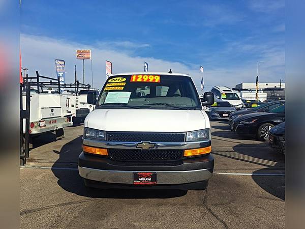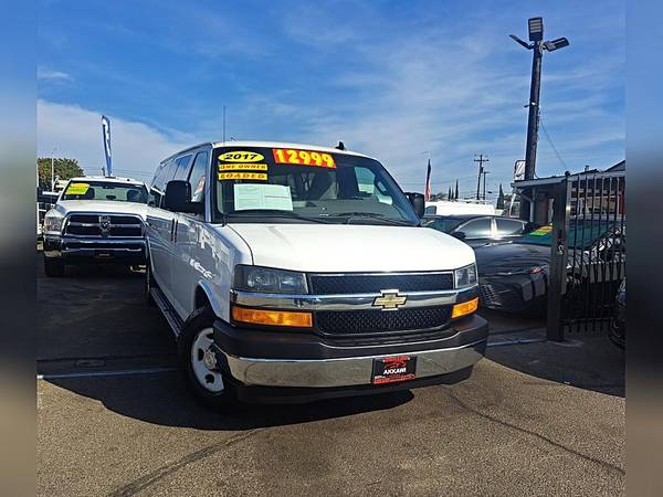 The 2017 Chevrolet Express 3500 RWD 3500 155 LS w/1LS Automatic is a reliable and powerful full-size van that is perfect for any business or personal use. ONE OWNER, CLEAN TITLE, NO ACCIDENT. Its spacious interior and versatile design make it ideal for transporting 12 passengers or cargo. With a strong V8 engine and smooth automatic transmission, this van provides a comfortable and efficient driving experience. The LS trim comes with a range of features including power windows and a rearview camera. Whether you need a workhorse for your job or a reliable vehicle for your family, the 2017 Chevrolet Express 3500 has got you covered. #VersatileVehicle #PerfectChoice. Upgrade your ride with the 2017 Chevrolet Express 3500 and see the difference it can make in your daily life.