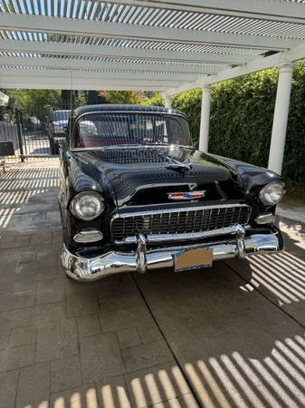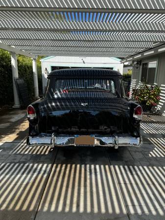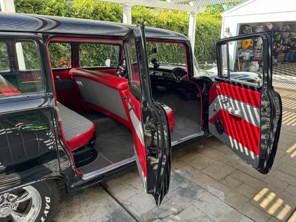 Well maintained 1955 Chevy 210 wagon. Smeding built 383 stroker, mild cam, just over 2K miles on engine. 700r4 transmission, digital dash, cold AC, very straight clean body. Newer red/gray interior, no rust, paint is impeccable – older but still shines. Nice driver – not a show car, but quite the head turner. Stainless trim needs installation but comes with the car. American Racing wheels with good tires, good brakes, and dependable. Comes with clean California title. Original mileage is unknown, but the odometer shows 2530 miles since rebuild. Asking $38,500 OBO