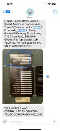 Engine, Engine Brake, Allison 5-Speed Automatic Transmission, Triple Differential Locks, 20122 lb Front Axle, 65878lb Rears, Rockwell Planetary Drive Axles,