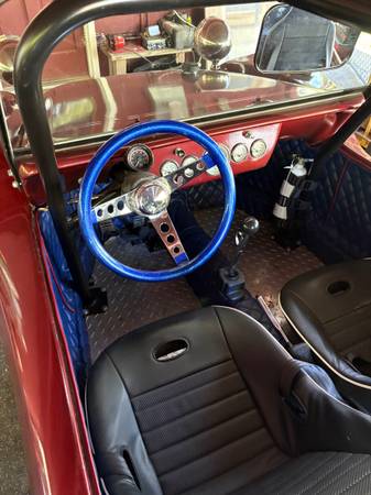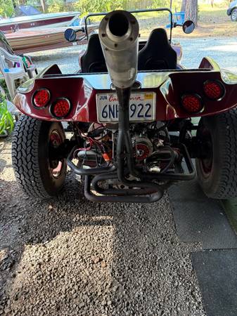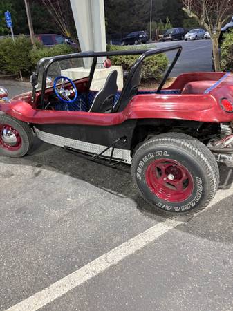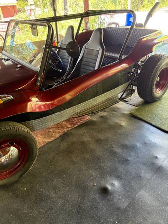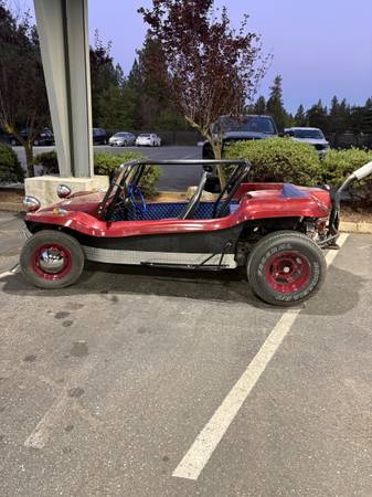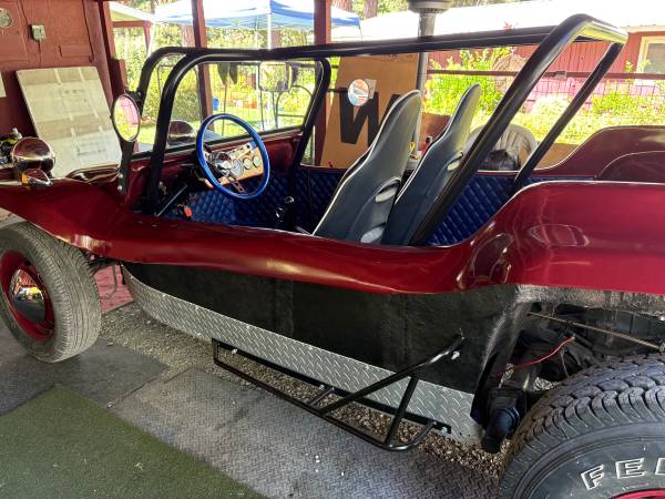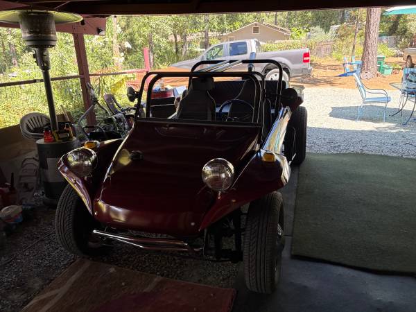clean vw manx style buggy with new tires front disc brakes new drums and pads rear brand new clutch installed with new petronix flame thrower distributor new alternator new carburator professionally tuned at Anthony s Classics in Auburn new upholstery diamond plate floorboards custom roll bar fabricated and installed clean buggy 125 lbs compression running good clean title registered till next year tow bar comes with buggy