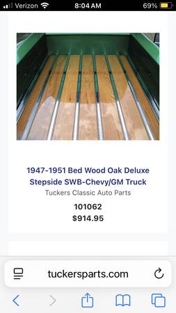 Includes the following new parts ready for installation: complete new in the box deluxe blonde oak bed kit with polished stainless steel bed strips and bolt kit. Left and right bedsides. Front bed panel. Four cross sills. Bed mount block kit.