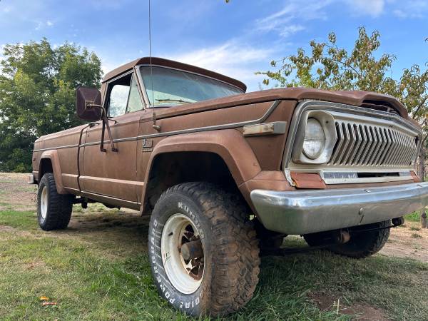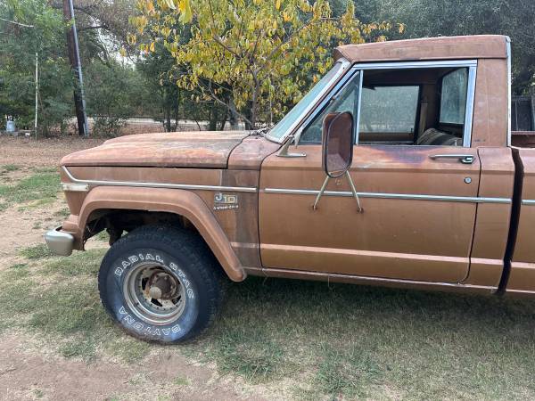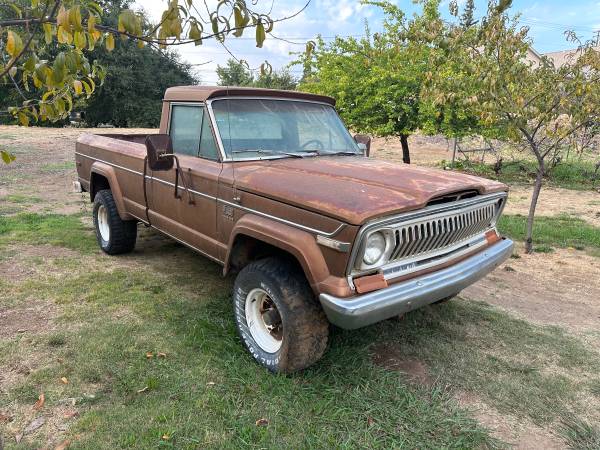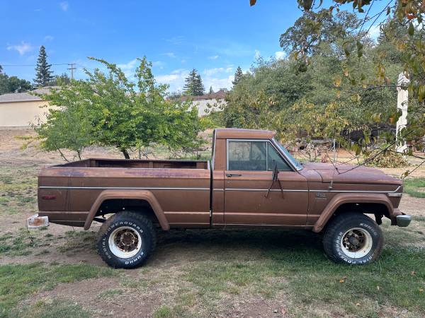 1978 Jeep J10 4x4 pickup for sale. V8, 4x4, automatic. Ran when parked in 2005. Complete truck. Passenger floorboard is rusted out. Had cats living in it so the interior needs to be gutted Shouldn’t...