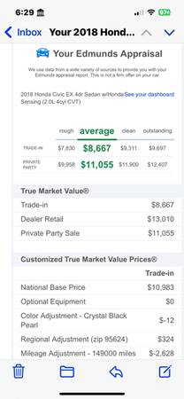 2018 Honda Civic EX 4dr Sedan (2.0L 4cyl)