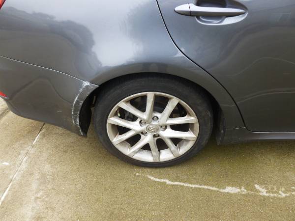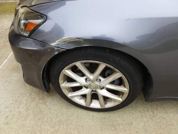 Cons: This Lexus IS250 holds a salvage title. Its' front end slowly ran into a ditch. So it has some minor scrapes around front bumper and driver side fender a small dent. This is cosmetic issue. Tire pressure monitoring valves need to be replaced. The price reflects all this.