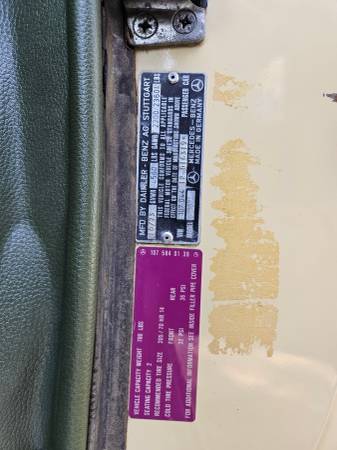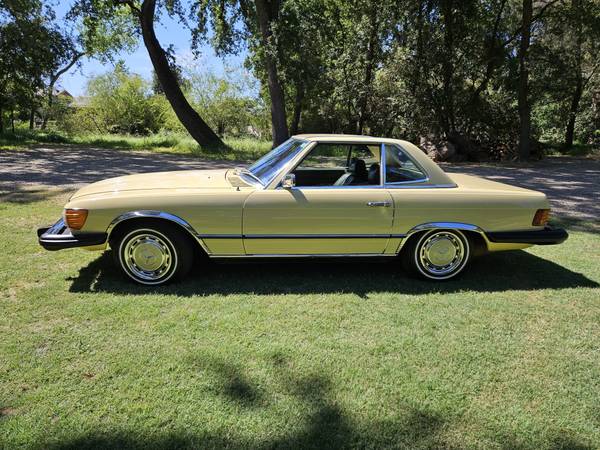1974 Mercedes Benz 450SL with 146,000 original miles. Highly desirable colors (maple yellow with light olive leather interior). Removable hardtop. Purchased new by the sellers mother in 1974 (Dahlke Motors). The car is very original, never wrecked. one small valance repainted (under left headlamp) struck by road debris. Otherwise the paint is original. Always garaged and well cared for. Call or text with questions. The car can be viewed in Lodi by appointment.