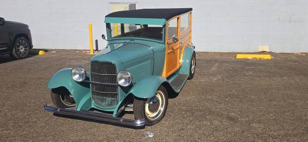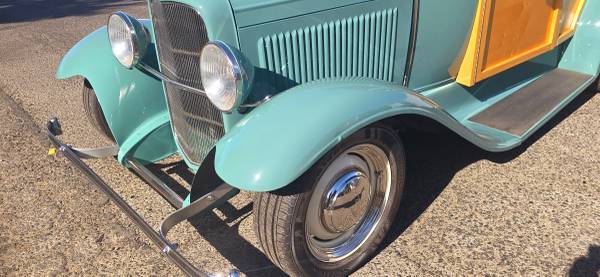 Nice reliable 31 ford woody with 32 grill, fresh 302/c4 9inch ,A/C,dropped axle, really nice paint and wood,as nice underneath as on top.
