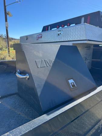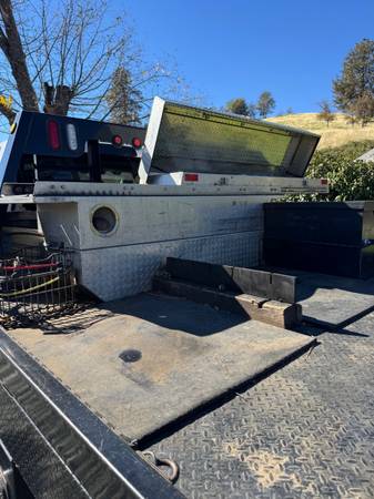 Bradford 11’ flat bed with gooseneck and under skirt boxes.