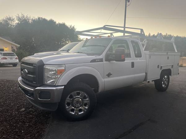 2015 Ford F350 4x4 Diesel utility truck, fork lift loadable lumber rack, 9' bed