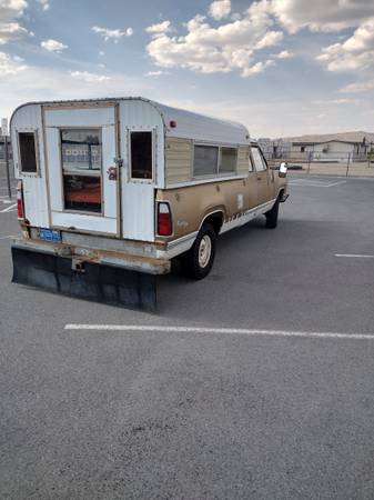 76 Power Wagon Club Cab 4x4 with BB, 4spd, with PTO driven winch believed to be installed when new along with the camper and bed kit. Runs great. To much to list here. Bought new at Reno Dodge 2nd owner 96,000 original miles. Also have 1955 Dodge Short step side Pilot Cab two wheel drive and 1974 Adventurer 100 two wheel drive long fleet side. Both are 2nd owner vehicles. Serious party's only please. No Emails or Texts. CALLS Only show contact info