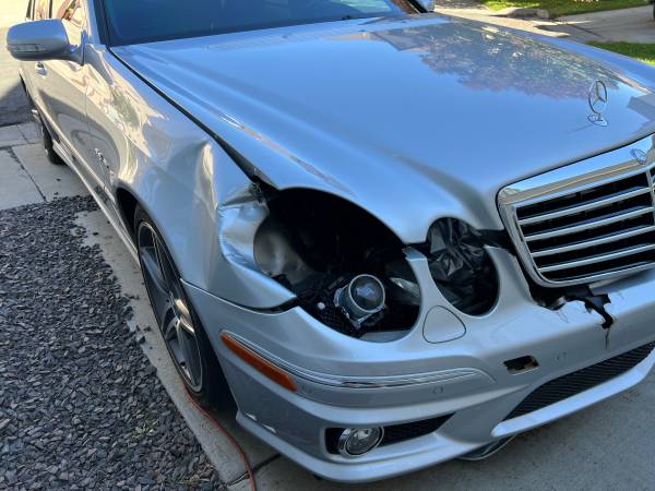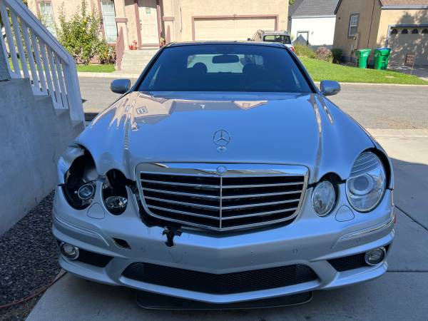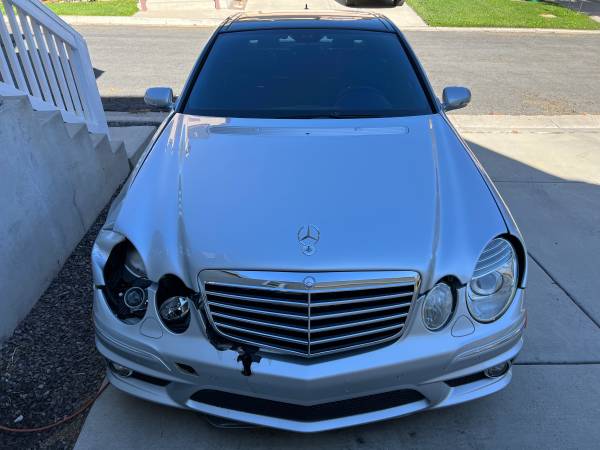 2008 Mercedes-Benz E63AMG, (DAMAGED/ACCIDENT!) Mileage 99,763. SILVER with BLACK Interior, Full Optioned including Panorama Roof (Still Working), ParkTronic, DiscTronic…etc