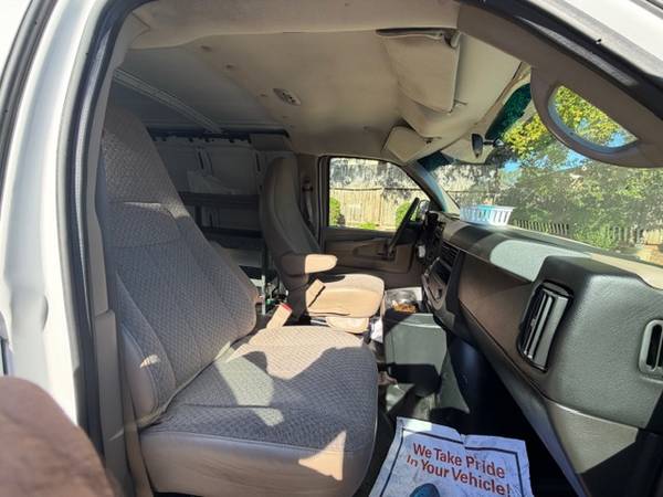 The Van is in excellent condition inside and out. There are no large dents or scratches outside and no rips or stains inside. Everything on the Van works great. The AC blows cold and the Heater blows hot. The tires and brakes are in fairly good condition as well. The Van has always been maintained every 5000 miles and all of the services are up to date.