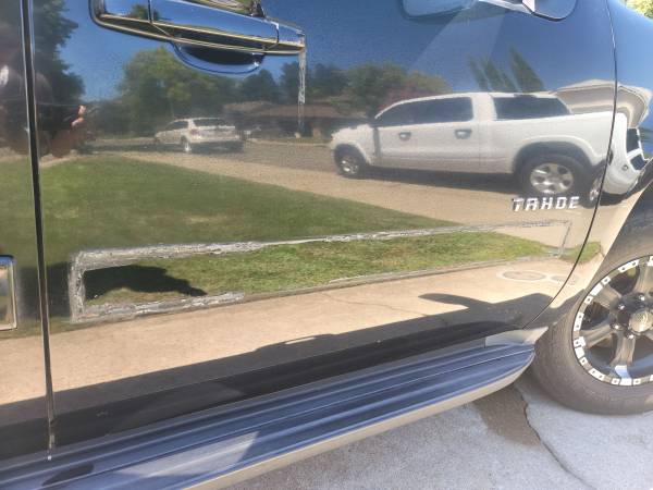 - exterior door trim on front driver/passenger doors fallen off, epoxy used to hold on door, remains.