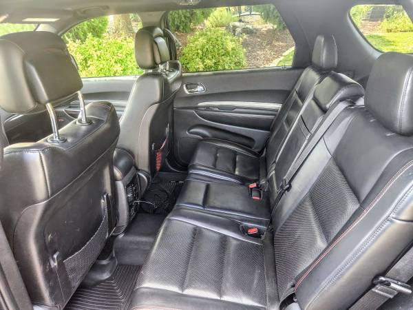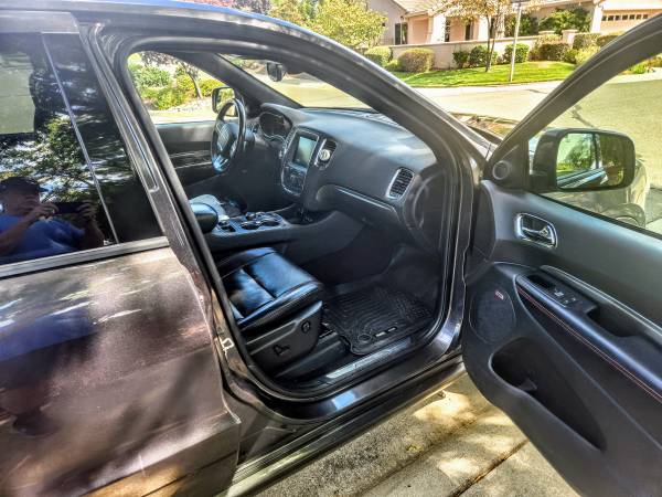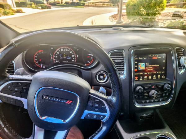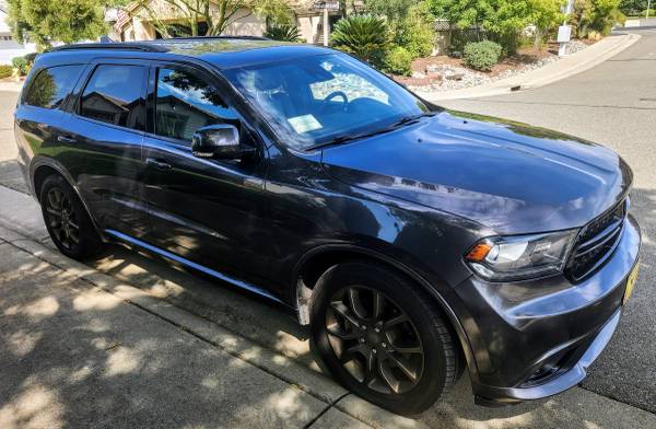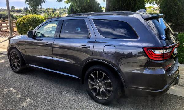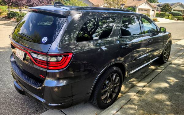 We hate to give up this all purpose SUV. Our 2017 Dodge Durango R/T Sport Utility 4D has been perfect for us. Powerful V8 HEMI 5.7L engine and 8-speed automatic transmission offers passing power and around 22 MPG on the freeway. We've used the AWD in rain, ice and snow. The Granite Metallic Clearcoat exterior and RT Black Leather interior with Red Trim are in very good condition. Tires, Brakes and everything else has always been maintained by the best shops. We have all records. Key features include: