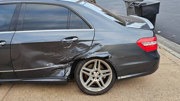 -Mercedes E550 with recent damage. Remainder of the vehicle is in good working condition including engine (4.7L twin turbo V8, mileage 129K) and transmission (damaged wheel still turns, but vehicle...