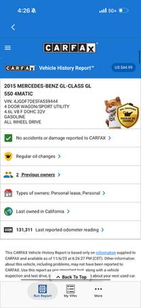 Selling my 2015 Mercedes GL550 with 134K miles on it. The car has a clean title and has never been in any accidents. The car has only ever had 2 owners and all of the services have been done at the Mercedes Dealership and Certified Mercedes Benz shops. I have all of the service records for it. The car has the AMG sport package and is fully loaded. The car doesn't have any issues and runs great. I just smogged it today and I have the title in hand.