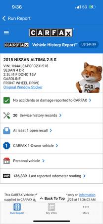 Selling my 2015 Nissan Altima S. Clean Title with 136k Miles. Good Condition. Mechanically also is in perfect running condition. Well Maintained. Smog passed recently. Navigation, back up camera...