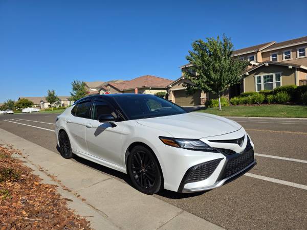 Beautiful pearl white Camry with red interior. XSE package, top of the line. Fully loaded with everything you'd ever need and more. Huge sunroof. Like new Michellin tires all around. Only 33k miles! 4 cylinder gas saver. Daily driver for last 2 years. Always maintained on time. Has traveled all around California and never had any issues. Have salvage title in hand, was professionally repaired at Roseville Collision, 5 star company. Hood, both windshields and front bumper was the ONLY damage. Absolutely everything works as it should. Super clean inside and out. Just passed smog the other day. July 2025 tags. No trades.