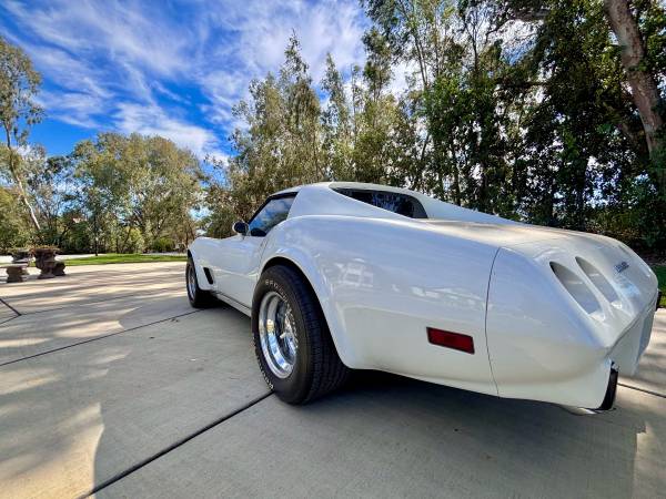 1977 Chevrolet Corvette Stingray • 350 V8 engine with Edelbrock intake & carb • Automatic transmission • MSD ignition setup • Polished hood scoop • Clean white exterior • Red leather interior •...