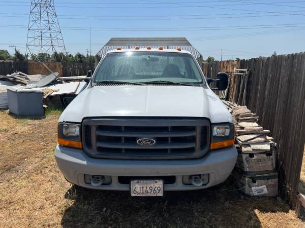 2000 Ford ,F-350 Super Duty, V-10 Titan, gas engine, dually flatbed, with custom bed, removable side racks. Ac blows cold, new front and rear disc , brakes , tires, u-joints! Spare tire. Clean title, new tags, recently passed smog!Side mounted locking tool box.