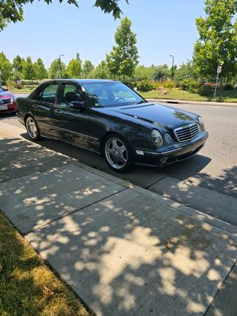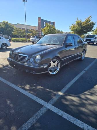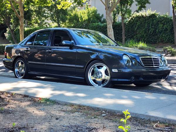 Rare E55 AMG. Amazingly powerful and fast. Beautiful and classy. I owned for the last 3 years. Bought car from my friend. Replace valve cover gaskets, oil cooler seals, air intake seal, 16 new platinum spark plugs, serpentine belt, new front wheel bearings and recent drive shaft bearing just replace. No leaks. AC and heater works well. Lowered with H&R springs and tires are good. Rare staggered 18x10 and 18x8 AMG 2-piece SL replica wheels. Sunroof not working and roof paint fading. Rest of body is shiny. Original M-benz windshield has crack lines. Runs powerful and AMG V8 sounds amazing. Pass smogged and ready to be enjoyed!