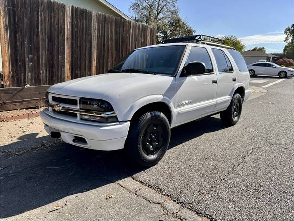 2004 Chevy Blazer ls 4x4 with 158k original miles and drives great no issues!! Has a v6 4.3 liter engine and automatic transmission both solid! Exterior is white in great condition for its age little blemishes here and there overall super clean must see in person. Interior has cloths seat great shape too no rips or tears. Some added feature are LED headlights and taillights, aftermarket stereo with apple CarPlay or Android Auto works for both . Tinted window all the way around suits it nicely. Has a nice roof rack for extra storage if needed included in sale .All power windows, lock ac/heater all in working order. 4x4 hi/lo work perfect easy to use!!! Has Tow package we never used it but good for someone who might needed. this was are back up car for years and it time to let it go only reason for sale ! some recent work on blazer with "recipes" like abs module unit replace, o2 oxygen sensor , abs speed sensors, gas cap ,canister purge valve all this done a year ago and most recent is brand new California legal catalytic converter and fresh sparks plugs it ready to go. Just pass smog few days ago and currently register till 2026 November save tons there. holds a clean title -please only serious buyer- -no text or emails- -CALLS ONLY-. Thanks
