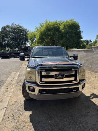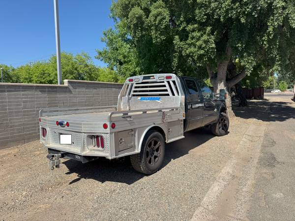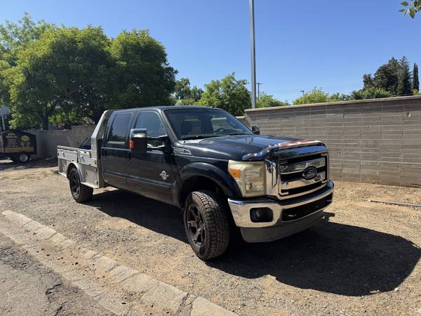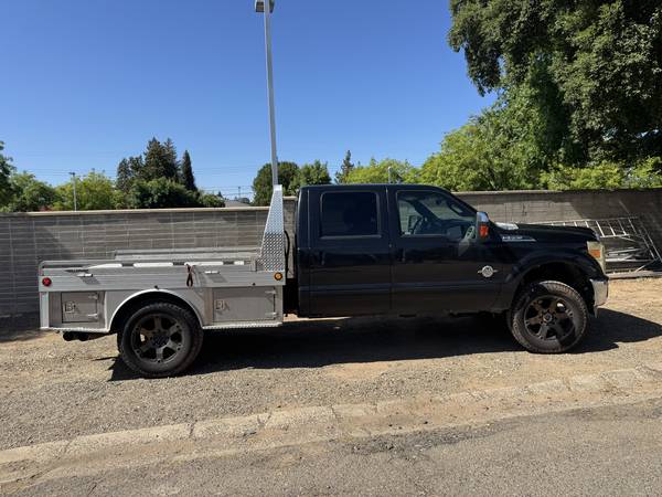Selling my 2013 Ford F-350 Super Duty lariat 4x4, a powerful and versatile work truck. This truck features a custom aluminum Hillsboro flatbed with built-in storage boxes, making it ideal for hauling and work projects. The spacious crew cab is equipped with comfortable black leather seats.