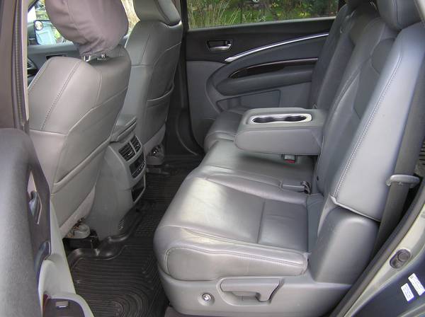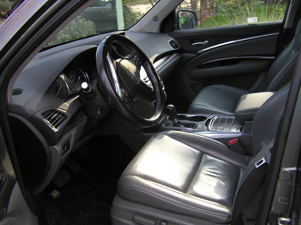 This MDX has never been smoked in, had pets in it, has not had children in it, and has never been in an accident. The exterior color is called Forest Mist Metallic, and it is a nice gray- green. The interior is medium gray leather, and it is in great condition. The third row of seats has never been used.