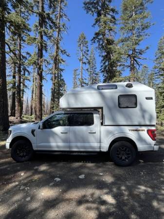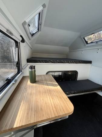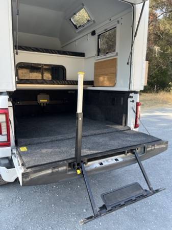 Aterra Topper made by AT Overland is super useful as camper, secure bike and gear transport, and handy truck bed. Professionally installed and secure against the weather. More than 6' standing room, you can walk right in when the back is open. Wait time for these is several months, but you can start your adventure much sooner with this one!
