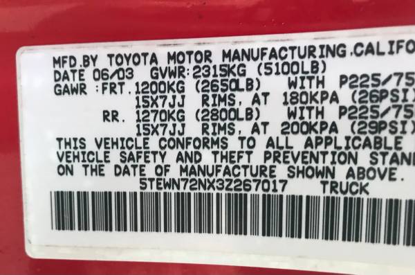 ><>< 2003 Toyota Tacoma 4x4 5-speed manual transmission><>>