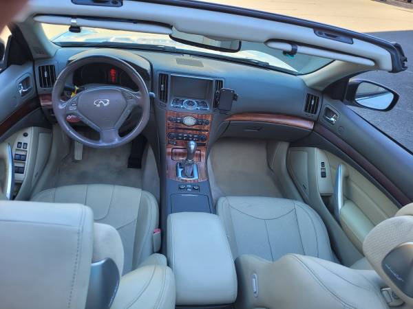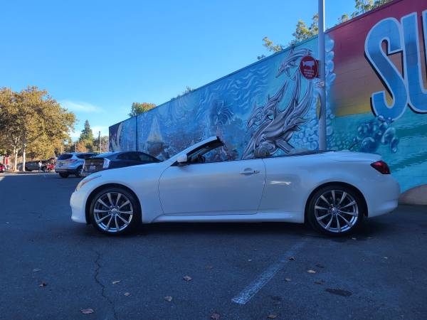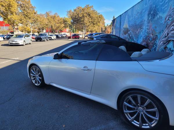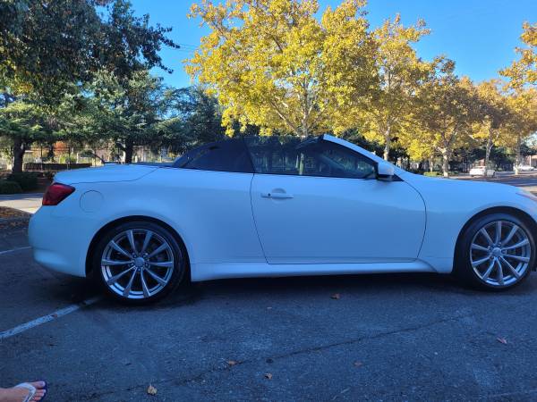For sale, beautiful 2009 infiniti g37 convertible, 138000 miles, clean title. non-salvaged, smogged with certificate 10/31/25. Pink slip in hand in my name. Exterior excellent, basic wear due to age. Good tires 90% Tread. Wheels in good shape. Ceramic tint windows with warranty. Convertible top works flawlessly. Interior, all electrical works. Auto door and windows, Cold A/C and hot heat. Great sound system, Sounds amazing. Upholstery is in great shape, minor flaws, no rips or gaps. Extras, Remote start, with active warranty. Custom 41/2 in cat back pipes. Crome tips, sounds amazing. Back up camera, Many new parts less than 30 days old. Starter, window motors, alternater, battery, and warranty for engine/transmission through April 2026. This vehicle is very nice and ready for sale. Serious buyers only, price is firm. 12.500$