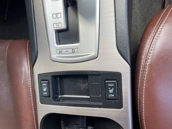 Automatic 4cyl. 30 mpg this year has the best engine produced by Subaru is the first year that came with timingchain no belt makes it more low maintenance All wheel drive has all weather package heated seats heated mirrors, Fogg lambs, beautiful brown leather interior moonroof power seats, rear back up camera navigation Bluetooth.