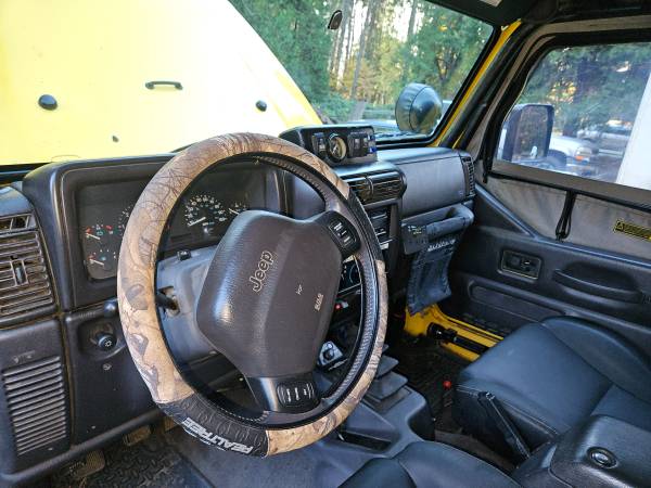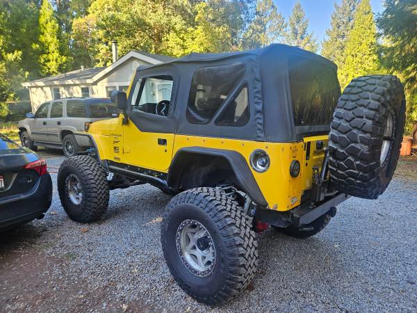 My jeep is a 2000 jeep wrangler 4.0 5 speed with 65k original miles with air conditioning. It has dana 60s front and rear with arb air lockers 4.56 gears 4 wheel disc brakes. Brand new 37x12.50x17 falcon wild peak m/t tires on Walker Evans bead locks. Metalcloak loc- n- load control arm. Arb onboard air with tank in front bumper. Brand new badlands Apex 12,000lb winch with synthetic rope. New stereo with sub and amp. Poison spider rock rails, rock lights. Swayloc sway bar disconnect. Limit strap. Hydro assist steering stabilizer. Rock lights. New battery. Kc spot lights. Extended seat for tall drivers. There's more i cant think of but you get the idea. Very well built can easily do the rubicon and fordyce and drives very nice on the road. I hate to sell it but I need a new truck. Asking $18,000 obo or trade for a low mileage dually 4x4.
