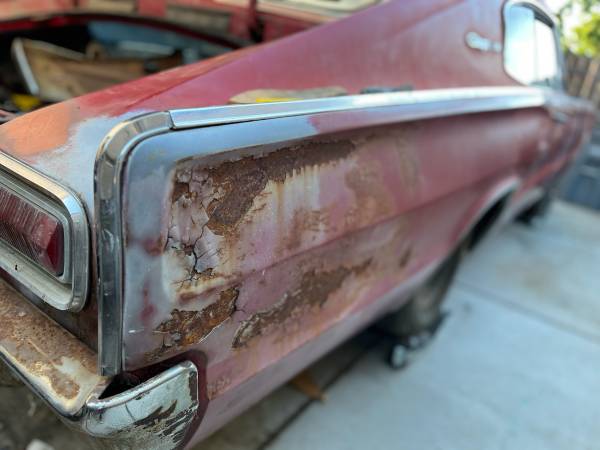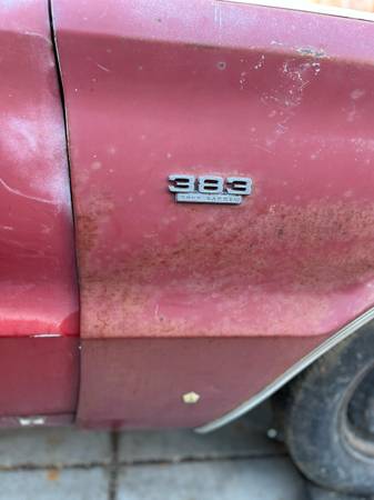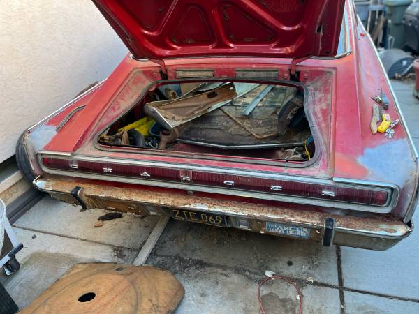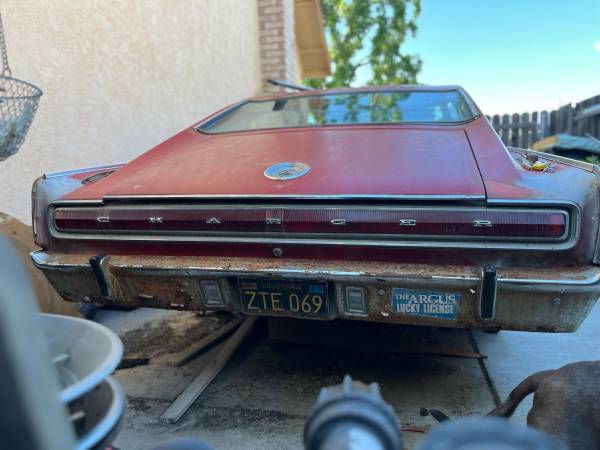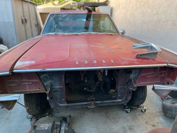 California 66 Charger, no rust through, all parts are here. Carpet kit and upholstery kit and fresh 383 reman short block,727 transmission. Needs total restoration, on non op, title ready to sign....