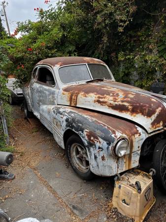 46 Pontiac torpedo Started as rat rod project Body is on newer chassis with disc brakes, v8 engine, mags Has sat for a long time, but drove here when parked Title is in my name but lost. Can get...