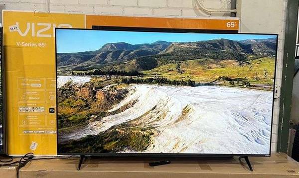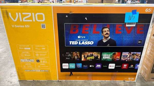 Enjoy cinematic experiences with our Vizio 65" V Series SmartTV, offered in 'Used - Good' condition. While the TV works flawlessly visually, it comes without sound, making it the perfect pair with the included Bluetooth ONN sound bar.