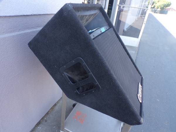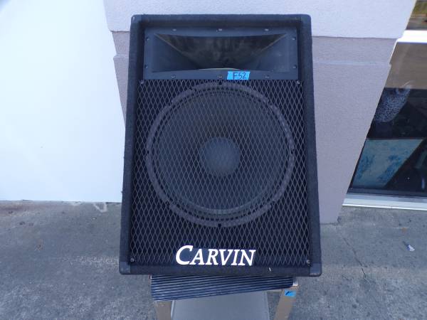 Carvin 742 2-Way 8Ω 400W 15" Stage/Floor Speaker Black Carpet Made in USA (Ref: F52) for sale. Previously owned, came from a local college. Works good. Cart is not included. Please bring your own Amplifier and cable to test it, before purchasing. Dimension: 19"W x 26 3/4"L x 20"D. Good shape. Price $100 Firm. Our ref: F52. If interested, please call or text me.