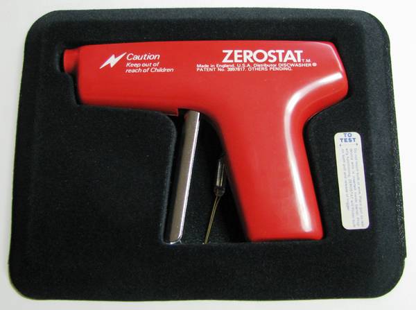In original box. Tested with included neon lamp. Works perfectly. Eliminates static charge on vinyl records, turntable dust covers, or most any non-conductive plastic that tends to accumulate charge (like plastic meter faces). Local sale only.