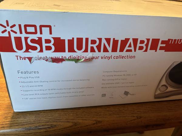 The ION iTTUSB USB Turntable / Vinyl Archiver Digitizer is a sleek and innovative home audio component designed to digitize your vinyl records. With its gray color and compact design, it is perfect for any home entertainment setup. This model, manufactured in 2007, supports 78 RPM records through included software and offers connectivity via a USB 1.1 port or higher. Made by the trusted brand ION, this turntable is brand new in box and has never been used, ensuring high-quality performance for all your audio needs.