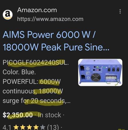 I STRONGLY URGE VISITING THE AIMS WEBSITE FOR TECHNICAL DATA AND BELIEVE THIS TO BE A DEAL THAT ANYONE SETTING UP OR UPGRADING OFF-GRID SOLAR BE IT FOR A CABIN, ONE'S HOME, CAMPING, RV OR WHATEVER WOULD WANT TO LOOK SERIOUSLY AT. THE NUMBER OF INQUIRIES I AM SEEING ARE TELLING, AS WELL. I DON'T SEE IT SITTING AROUND LONG.