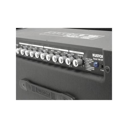 For on-stage use, guitar amps need to deliver shimmering clean tones, crushing distortion, vibrant effects and complete, channel-switching flexibility. Kustom has all that and more. Like Celestion (tm) speakers, plenty of power, and an extra boost for solos. Feature for feature and tone for tone, Kustom has earned its spot on today's concert stages. The Quad 100DFX is a 100-watt, 2x12 in. amp with 4 Preamp Modes, 24-bit effects, and a CD/Tape input.
