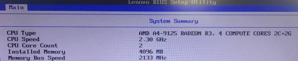 Memory: 4GB (1 x 4GB DDR4) CPU: AMD A4-9125 Radeon R3 2.3 GHz No Hard Drive Comes with power cord