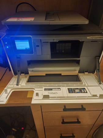 HP Office Jet Pro 9025e. Fast print speeds up to to 24 ppm 1, single-pass two-sided copy/scan, automatic two-sided printing, and a 500 sheet paper tray. Print, copy, scan, fax. Print speed up to 24 ppm (black) and 20 ppm (color) Print quality black (best): 1200 x 1200 rendered dpi. Automatic document feeder capacity. Print at high volumes with dual-tray capacity. One owner; purchased new. In excellent working condition. Asking $195.00.