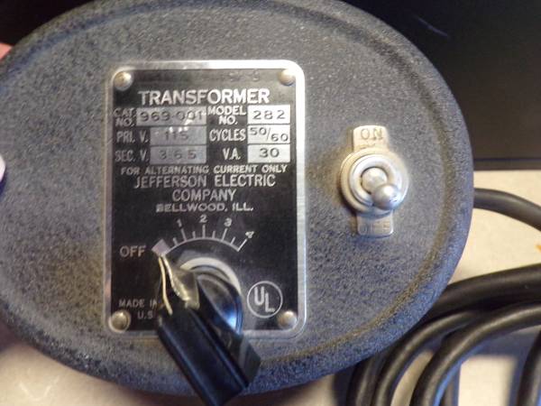 For sale Jefferson Electric 969-001 Model 282 Transformer 115V ( Ref: B3). Vintage. Works. Price $35. Our ref: Entertainment Center. If interested, please call or text me.