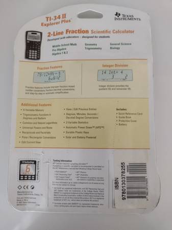 Texas Instruments TI-34 II Explorer Plus Scientific calculator New in package Great for school use! Price: $5 cash only Buyer must pick up. Sacramento Arden-Arcade area. Serious inquiries only. Text: