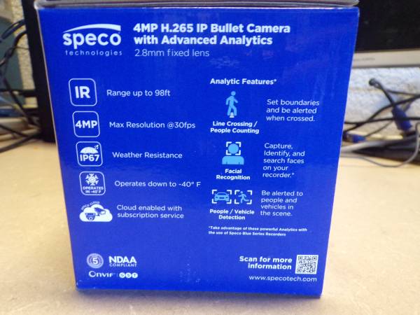 For sale Used Speco 04B9 4MP Bullet IP Camera. Includes everything you see in picture Quick Start Guide, Software and manual disc etc. Price $45 firm. If interested, please call or text me.