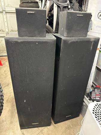 Sony speakers for sale. 4 speakers. Add to your existing system, tv, game system, man cave, garage or whatever. All in working order. Will remove add when sold Will not ship $80 or possibly trade...