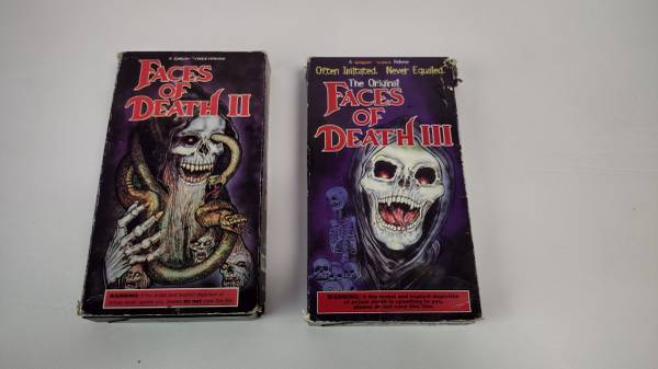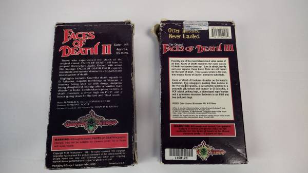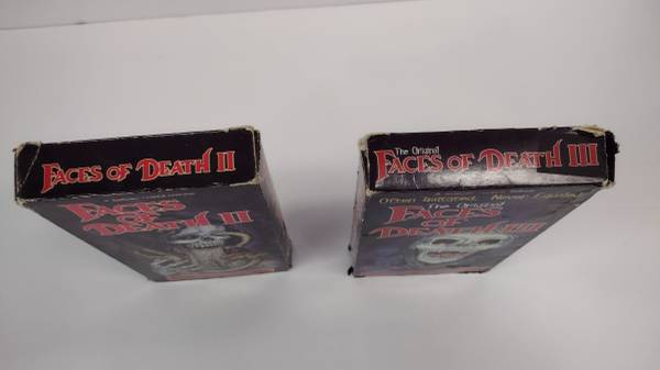 I have two very rare VHS tapes. These are the 90's re-issue releases of faces of Death II and III. These typically go for about $75 each, since these are in pretty rough shape, I am asking $75 for both or $40 each. Part 2 is in a bit better shape than part 3. These have great cover art!!